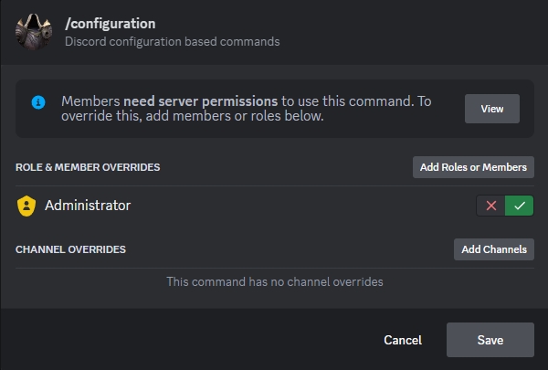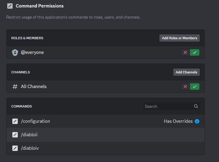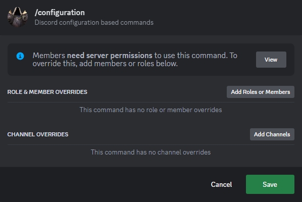 Discord provides server owners a way to override slash command permissions with roles or even single users. Discord also allows you to change which channels allow slash commands to be executed in them, but we will only be focusing on changing the default member permissions.